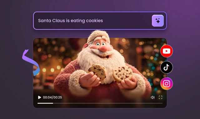 サンタクロースに動画で何をしてほしいか説明してください。当社の高度なAIサンタ動画メーカーがプロンプトを分析し、リアルで高品質な動画を自動的に生成します。詳細を提供するほど、結果はあなたのビジョンに近づきます。